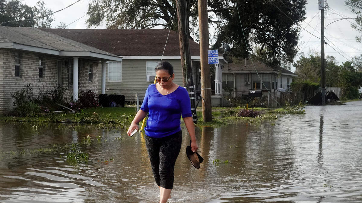 KENNER, LOUISIANA - AUGUST 30: Angelina Coxum walks down a street flooded by Hurricane Ida to check on a relatives home on August 30, 2021 in Kenner, Louisiana. Ida made landfall yesterday as a category 4 storm southwest of New Orleans. (Photo by Scott Olson/Getty Images)Photo: Getty Images